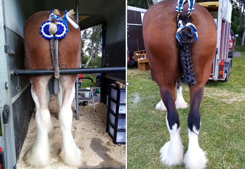 Many heavy horse owners aspire to win ribbons at big shows such as the Royal Highland Show and HOYS. With the hindquarters and legs a crucial part of conformation that is judged, it has become a disturbing "tradition” to shave off the tail hair from the dock for no other purpose than unobstructed viewing of the legs and back end.